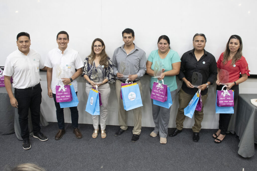Asimismo, se otorgaron menciones especiales a instituciones y aliados estratégicos como BTL S.R.L., PHISIO BASIC S.R.L., FISIO BEL, el Colegio de Fisioterapia y Kinesiología de Santa Cruz, Laboratorios Bagó, y a la Mgr. Rosalba Rocha, directora financiera de la UCB Santa Cruz.